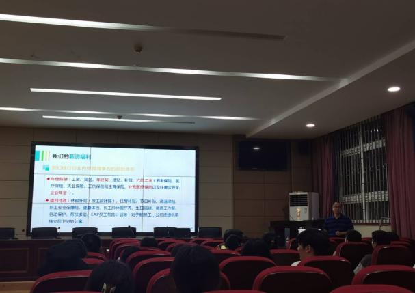 会议开始前,蒋文军先生播放了茂名石化的宣传片,并首先从茂名石化的历史与发展展开了话题。然后逐步地介绍了公司的地理位置,生活环境,组织结构以及其优秀的企业文化——艰苦奋斗,自立图强,严细求实,团结创新。目前,公司原油加工能力达到2000万吨/年,乙烯生产能力达到110万吨/年,同时拥有热电、港口、铁路运输、原油和成品油输送管道以及30万吨级单点系泊海上原油接卸系统等较完善的配套系统。截止2022年6月,现有固定资产原值超510亿元。近4年来,公司效益逆势上升,取得“一年利润全系统第一、三年利润超过百亿元”的好成绩,稳居中国石化同规模企业第一位。接着蒋先生又着重地介绍了“3”个人才通道和“十四五”扩建的这一机遇,又提及到公司会为应聘生提供完备的培养体系及薪资待遇,六险二金(养老保险、医疗保险、失业保险、工伤保险和生育保险、补充医疗保险以及住房公积金、企业年金)和各种劳动保护、帮扶求助,这一系列的制度措施都是力求保障好每一位员工的生活条件。