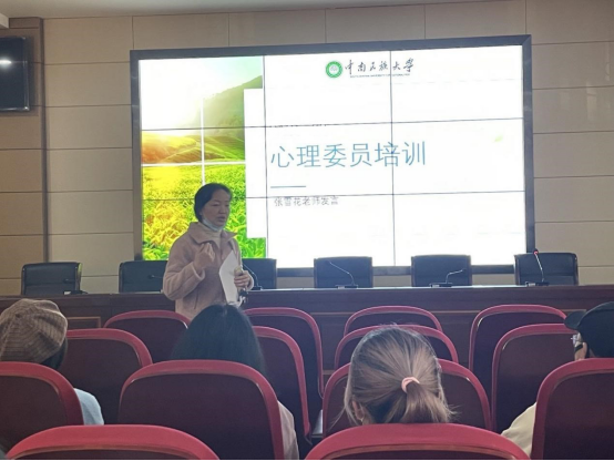 2022年11月10日,张雪花老师在化材楼一楼大会议室针对全院的心理委员开展培训工作,老师首先讲了心理委员工作的重要性,她表示担任心理委员是非常重要的工作,心理委员是同学们心理安全、身心健康的守护者。张老师认为心理委员是老师和同学之间交流沟通的桥梁,要具有获取关键信息的敏锐性,第一时间把危险的情况及时的报告给老师以及心理相关工作人员。