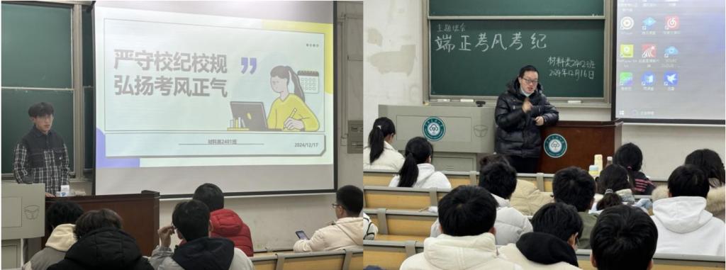为了进一步加强学风建设,营造诚实守信的学习氛围,学院各班于11月至12月开展了一场以“遵守校纪校规、严肃考风考纪”为主题的班团会。本次主题班会由各班团支书和班导师共同主持,全体学生积极参与。