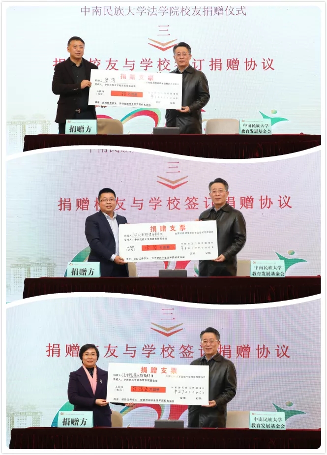 校党委副书记、教育发展基金会理事长白江源在总结讲话时表示,学校党委和行政衷心感谢校友和校友企业的捐赠,并指出,“校友是学校办学的宝贵资源,是学校办学质量的口碑,是学校品牌的无形标尺。校友走多远,学校的疆域就有多远。一流的民族大学,必须建设一流的校友会。这是学校第一个由学院校友分会承办的捐赠。这一次捐赠仪式,看似简单,但是值得记入威尼斯886699大学、法学院的历史。”白书记希望,学校基金会管理部门和法学院要按照捐赠协议,认真履行捐赠校友意愿,充分发挥并进一步扩大捐赠款项的作用,也希望将来获得奖助的各位在校学生能永怀感恩之情,奋发学习,积极工作,用优异的成绩来回报各位校友及校友企业。