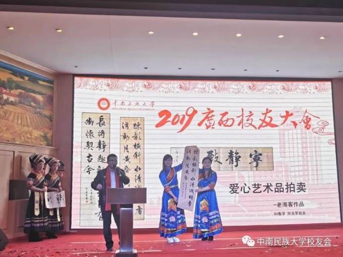 为进一步做好捐资助学工作,会上,对校友所捐书画作品进行义卖,共计9万余元,所得款项将注入广西校友会助学金,资助母校广西籍贫困学生。截至19年上半年,广西校友会已连续六年捐赠助学金共30余万元,在助力学生顺利成长成才方面起到了重要作用。