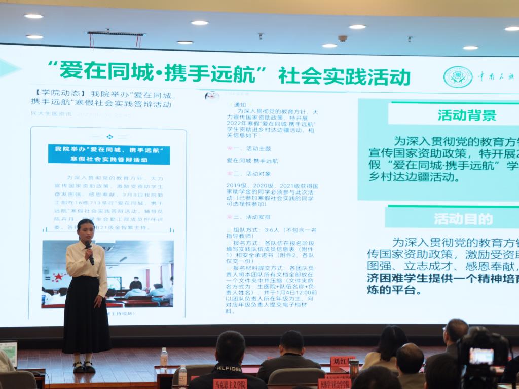 “十佳自立自强代表人物”彭佳惠与杨雪飞分别讲述自己的自立自强故事。彭佳惠即使遭遇重大家庭变故、命运多舛,仍然未曾放弃心中的理想,通过不懈努力,在学业成绩上名列年级前茅,同时积极参加志愿活动和社会实践,回馈社会;杨雪飞讲述自己与勤工助学的深厚情感和砥砺奋进的人生故事,勤工助学工作使自己的文字表达和沟通交流能力得到了提升。“勤工助学先进集体代表”生物医学工程学院勤工干部从勤工育人和院校协同方面展示了2022年学院勤工工作成效。最后,党委学工部相关负责人为十佳自立自强代表人物和先进集体颁奖。