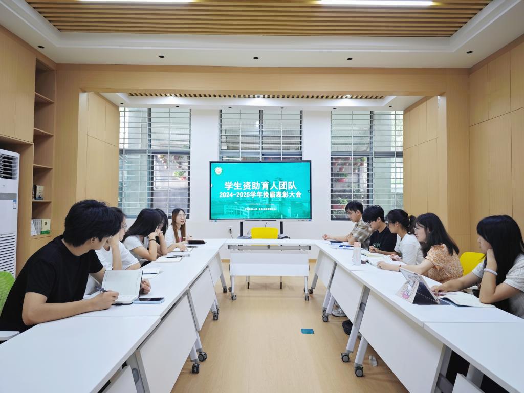 会议伊始,资助育人团队前任负责人代表首先进行年度工作述职。学工部学生资助管理中心与你同行团队负责人韦晓晓、勤工助学指导中心负责人李章申、新长城威尼斯886699自强社负责人李宏翔、阳光工作室负责人赵文敏依次汇报本团队2024-2025学年的工作成果,针对团队现存问题提出优化方案,并分享了担任团队负责人的工作感悟与心得体会,同时对学校的资助政策、提供的实践锻炼平台以及教师的悉心指导表示衷心感谢。