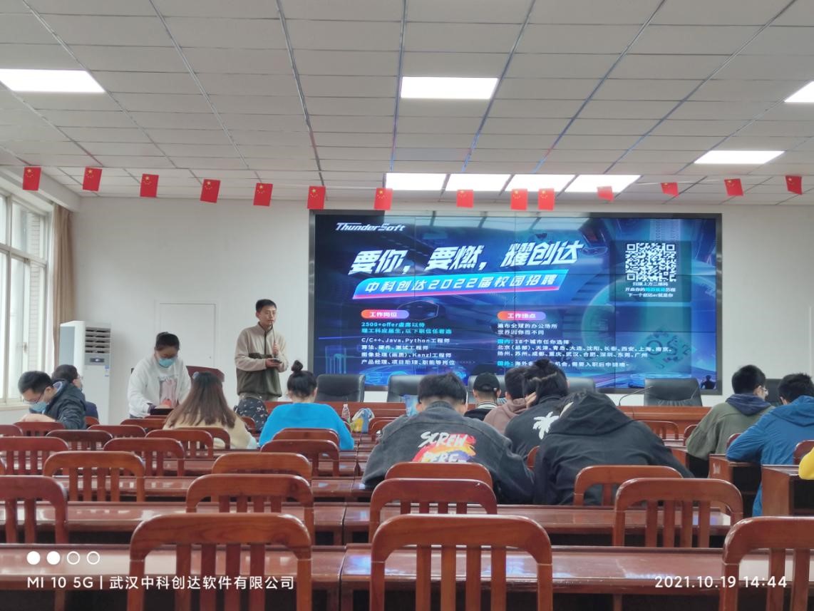 为了帮助计算机科学学院2022届毕业生更好地了解招聘信息,找到自己心仪的企业。10月19日,计算机科学学院在9号教学楼211教室举办武汉中科创达软件有限公司专场招聘会。
