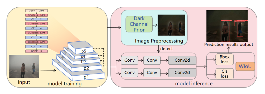孙梦同学的论文题目为《Pedestrian Detection in Foggy Weather Through YOLOv8 based on FEAttention》。她的研究工作主要关注在雾霾天气下难以准确识别、定位到行人,甚至会出现漏检、错检等问题,提出了一种基于 YOLOv8算法的改进模型 CDW-YOLOv8,该模型的结构框图如图3所示。为了提高模型检测的准确度和为相关研究提供更多优质数据集,自制了一个公开的中等规模雾天行人检测专用的Foggy Pedestrian 数据集,包含多种复杂雾天情况下的行人图像,如图4所示。