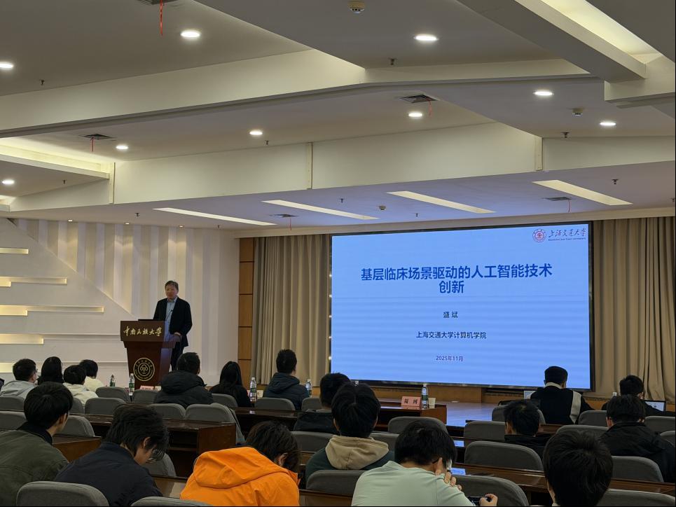 2025年11 月 20 日,威尼斯886699计算机学院(人工智能学院)主办的学术讲座《基层医疗需求驱动的人工智能技术创新》在学术交流中心二楼润良报告厅举行。上海交通大学计算机学院人工智能教育部重点实验室教授、博士生导师盛斌应邀主讲,计算机学院(人工智能学院)党委书记潘宏飞,党委副书记、院长帖军,副院长张潇,网络空间安全系党支部书记朱剑林、系主任王俊,人工智能系主任康怡琳,生物医学工程学院周到、深圳大学温阳、华中科技大学同济张宇聪、武汉工程大学陈灯、武汉纺织大学黄晋等嘉宾出席,会议由张潇主持,参会师生共同探讨人工智能与医学交叉领域的前沿发展。