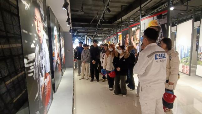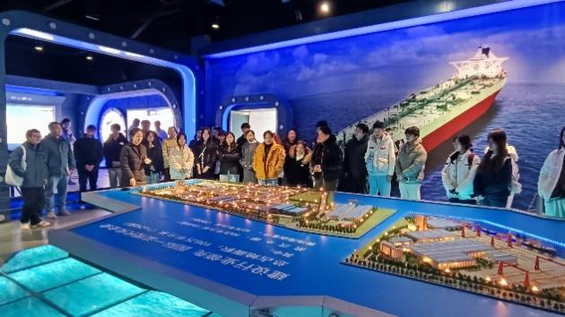 活动伊始,武汉船用机械公司人事部曹雷雷副部长带队参观公司展厅。展厅内,承载企业发展历程的珍贵照片、彰显核心技术实力的产品模型、记录行业数智化突破的亮眼数据,生动展现了企业在党建引领下,深耕船舶机械数智化领域、助力国家海洋强国战略的责任与担当。曹雷雷副部长结合展品详细介绍了公司的发展沿革、核心业务布局、关键技术突破及党建与生产经营深度融合的实践经验,让在场师生对“大国重器”的诞生背景与发展脉络有了更直观、深刻的认识。