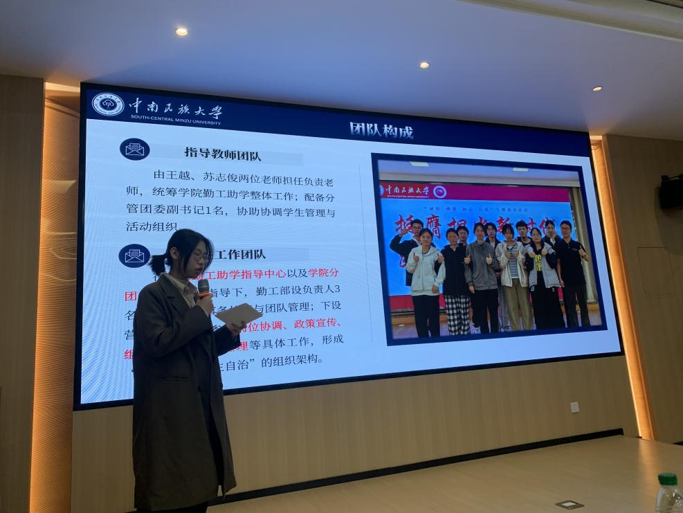 黄佳琪代表学院进行勤工助学先进集体答辩 苏志俊摄