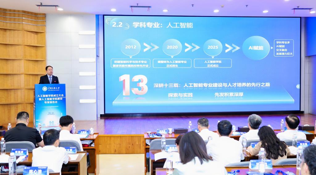 人工智能学院院长帖军详细介绍了学院发展规划。他表示,人工智能学院的成立为打造民族院校AI学科融合发展新格局,推进“AI + 中华民族共同体意识教育”的复合型人才全链条培养,服务中华民族共同体建设的AI科研创新高地注入了新能量。学院将聚焦“学科专业建设、学院转型升级、学校交叉融合”三个层面,形成以智慧农业、智能制造为特色的研究方向,构建“以人工智能为纽带、多学科共生共荣”的生态格局,全面支撑学校“新工科”战略落地,力争成为国家民委直属高校人工智能人才培养、应用示范排头兵。
