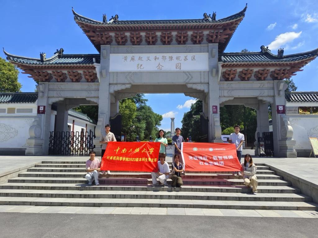值此热烈庆祝中国共产党成立104周年之际,恰逢深入贯彻中央八项规定精神学习教育的深化巩固阶段,2025年7月2日,计算机学院(人工智能学院)精心组建一支由6名新发展党员与1名发展对象构成的“党旗领航 数智报国”实践团赴红安县开展暑假社会实践,旨在通过沉浸式红色研学,引导青年大学生党员赓续中国共产党人的精神血脉,了解革命事迹,聆听革命故事,感悟红安革命老区的人文底蕴和红色文化,传承红色基因,弘扬优良作风,在实践中领悟大别山精神,铸牢中华民族共同体意识。学院党建工作联络人、2023级本科生辅导员沈易军、2024级本科生辅导员黄炎垒带队参加社会实践。
