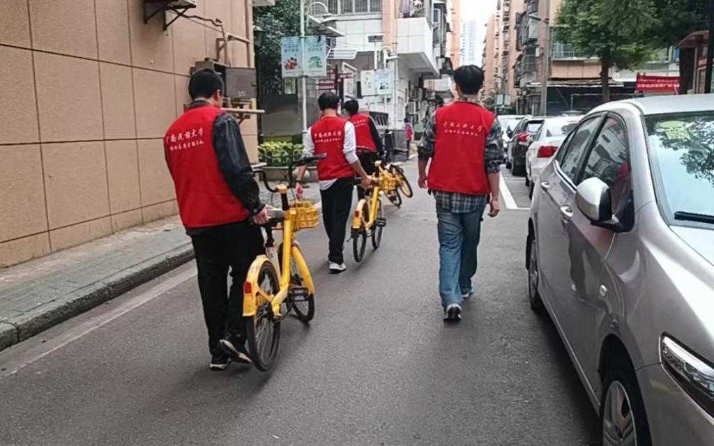 与此同时,志愿服务也延伸至校园环境建设。11月10日、12日,学员们分组在宿舍区、食堂周边开展“规范单车摆放,共建文明校园”行动。大家将随意停放的共享单车排列整齐,引导师生有序停车,用双手规整出整齐划一的车阵,营造出更加整洁、安全、便捷的校园环境。