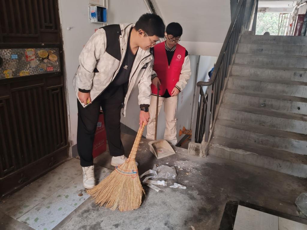 活动伊始,志愿者们在社区工作人员的引导下明确分工,深入社区一线开展环境卫生综合整治。部分志愿者手持清洁工具,认真清扫居民楼道内的卫生死角,清理社区公共区域的路面杂物,有效改善了社区的人居环境。