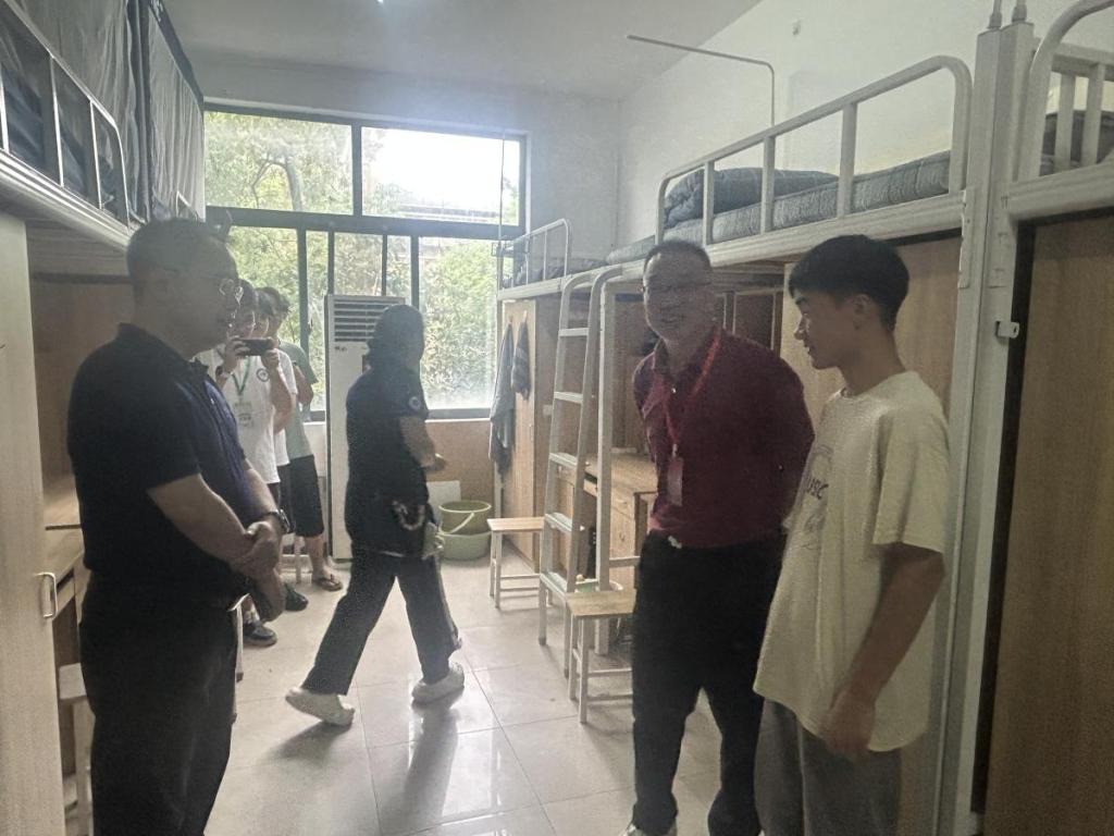 在新生宿舍,宋书记关切询问新生住宿条件适应情况、饮食保障落实情况及入学相关手续办结进度,以温暖细致的沟通让新生切实感受到学校的暖心关怀。交流中,宋书记结合学校人才培养目标,对新生提出明确要求与殷切期望:一是要珍惜大学四年宝贵时光,树立清晰的学业发展目标;二是要合理规划课余时间,减少网络游戏沉迷,将精力聚焦于专业学习与综合能力提升;三是要强化学习自主意识,主动提升学习自驱力,切实承担起学业发展与自我成长的主体责任,争做自身成长与学业进步的“主人翁”。