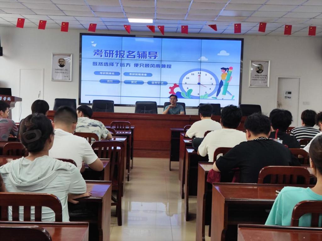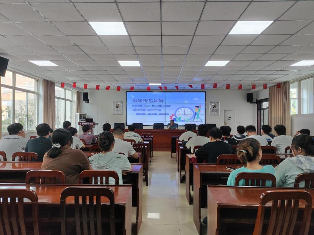 田微作考研动员讲话。他结合多年的教学与管理经验,从考研的意义、报考流程、院校专业选择、备考策略等多个方面进行了详细解读。田院指出,考研是一场策略战,同学们在备考过程中,不仅要扎实掌握专业知识,还要注重目标院校的调研。他还特别提醒同学们,在选择院校和专业时,要充分考虑自身的实力、优势以及专业排名,做到知己知彼,才能提高考研成功率。