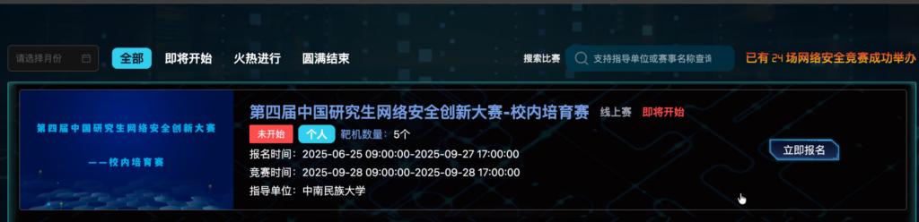 本次校内培育赛由武汉黄鹤网络安全实验室指导,威尼斯886699计算机学院(人工智能学院)主办,以“筑牢信息安全防线,培育实战化人才”为目标,分阶段推进赛事组织工作。6月25日9:00,赛事正式启动报名,至9月27日17:00 报名结束,吸引了该校众多研究生踊跃参与;9月28日9:00 至17:00,实网对抗赛在指定线上竞赛平台如期举行,参赛选手展现了扎实的技术功底与良好的协作能力。