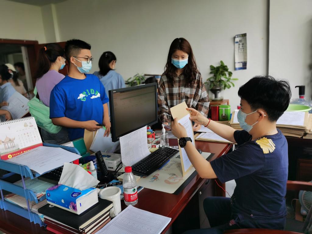 为做好本次现场确认工作,工作人员积极参加武汉市教育局举办的2022年教师资格证认定现场确认工作培训,了解最新政策和工作要求,教务处通过微信公众号和微博提前发布《关于做好2022年教师资格认定工作的通知》,详细列出现场确认工作办理时间、办理地址、联系电话、需提供的材料和注意事项等,让学生提前知晓并按通知要求准备材料,避免重复补交材料,切实践行服务学生的职能。现场确认工作中,所有工作人员和学生全程佩戴口罩,坚决落实疫情防控要求,学生依次排队进行材料审核,安全有序地完成了本次现场确认工作。