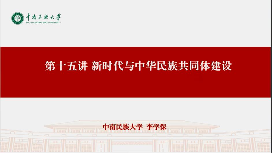 李学保主讲《中华民族共同体概论》第十五讲“新时代与中华民族共同体建设(2012— )”。他以问题意识为导向,分析中华民族共同体建设的四个主要问题,第一,通过对比“中国之治”与“西方之乱”、国内民族政策大讨论、面向未来的民族工作三个层面论述“新挑战”;第二,围绕“铸牢中华民族共同体意识”主线、“六个必须坚持”“五项重点工作”三个方面理清“新思路”;第三,从政治、经济、文化、社会、生态文明“五位一体”感受“新成就”;第四,以中国式现代化五个方面的中国特色探讨“新路向”。他指出,本讲的关键在于把政策语言转化为教学语言,要把习近平总书记关于加强和改进民族工作的重要思想讲得生动鲜活、入脑入心。在授课结尾,他结合自身教学经历分享感悟:“课程涉及大量历史知识,对老师的知识结构要求高,授课难度大,同时涉及中华民族共同体的理论阐释,理论性和政治性强,因此要根据教材内容有目的性地设计讲授内容,吃透教材,围绕主题,多讲故事,阐释道理,培育好各民族的中华民族共同体意识。”