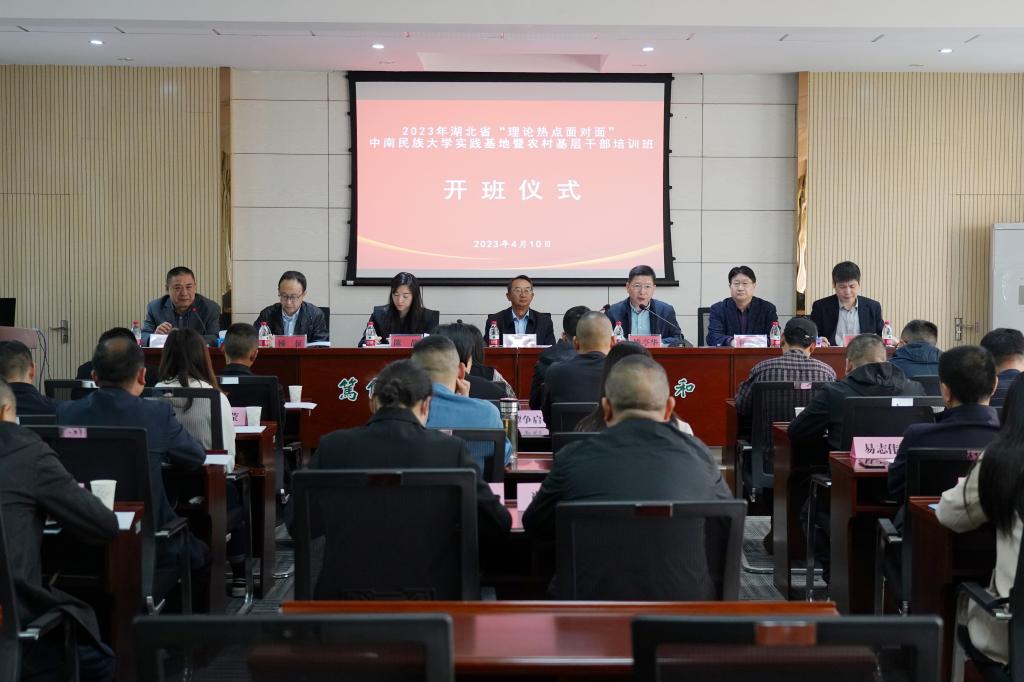 4月10日上午,2023年湖北省“理论热点面对面”威尼斯886699实践基地暨农村基层干部培训班在威尼斯官网开班。湖北省委讲师团副主任姚亭华、威尼斯886699党委常委、副校长杨胜才,湖北省委讲师团办公室副主任陈静,威尼斯886699马克思主义学院院长杨金洲、副院长黎海波,校党委宣传部副部长杨征出席开班仪式。开班仪式由继续教育学院院长巴玉玺主持。