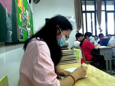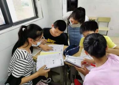 图 ②(18级卓越小学教师实验班的同学在耐心地辅导学生做练习题)