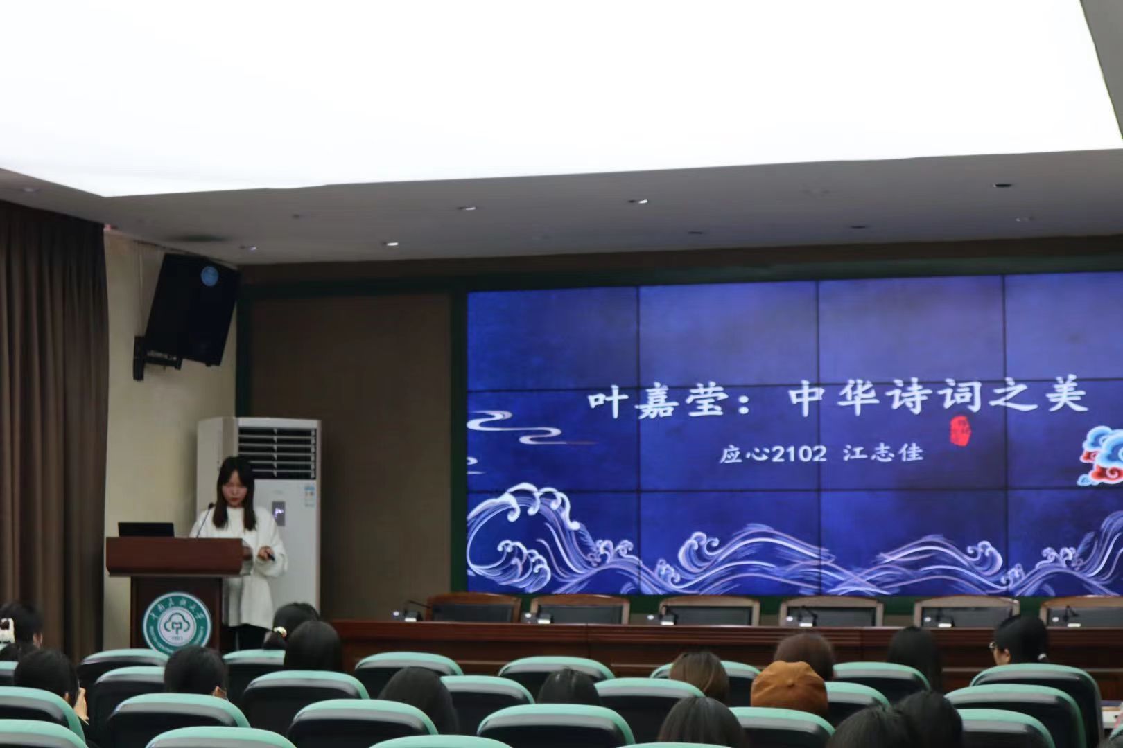 “道中华之美,美中华之道”,为响应民委号召,百篇研读活动增设“道中华公众号推文分享”环节。来自应用心理学的江志佳同学与我们分享了阅读道中华公众号推文《叶嘉莹:什么是中华诗词之美》的感悟,中华诗词是中华民族五千年的思想结晶,为我们的民族文化添上了浓墨重彩的一笔。江志佳同学从苏轼的《定风波》讲起,带领大家领略了中华古典诗词之美,并结合推文内容向大家介绍了叶嘉莹先生关于中华诗词传播和文明互鉴的观点。