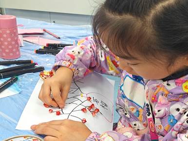 课堂上,丰富多样的教学形式更是让课程精彩纷呈。通过多媒体的生动展示、小组讨论的趣味互动以及创意手工制作,孩子们能够将对自然的观察和对人文的感悟具体化,使之更加直观和生动。他们化身“文人雅士”参与茶叶品鉴会;化身“画师”精心绘制石榴主题的绘画作品;化身“泥塑师”用彩纸、黏土等材料制作心中形态各异的鱼。在动手动脑中,不仅提升了艺术创造力与语言表达能力,更在潜移默化中养成了科学精神与人文素养。