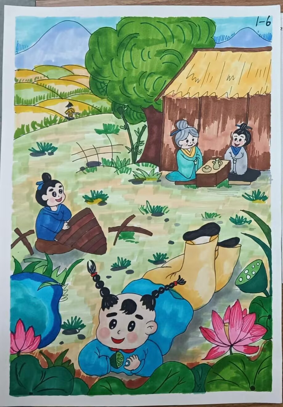 在本科生组比赛中,教院学子表现突出。袁茹、李鑫羽、张冉、陈佳玥、刘哲等5名学生荣获一等奖。其中,2023级本科生袁茹的简笔画作品《清平乐・村居》以迅速的构图能力和生动的设计,将“小儿卧剥莲蓬”的形象跃然纸上,摘得该赛道一等奖。她表示,与全省优秀选手同台竞技是一次宝贵的学习经历,不仅提升了专业技能,也拓宽了教育视野。
