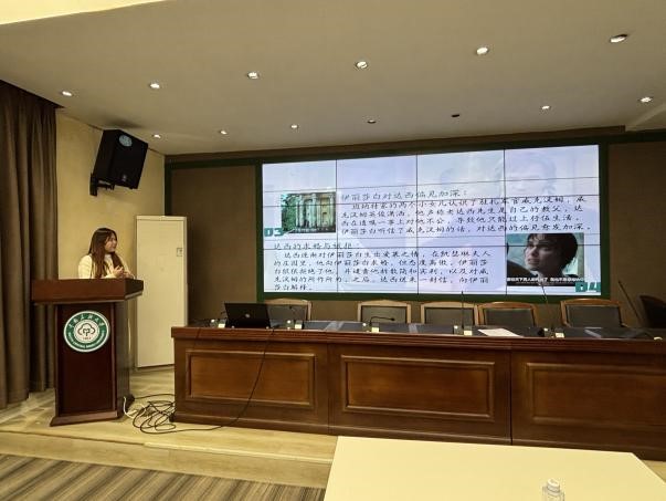 李梦同学就英国小说家简·奥斯汀所著的《傲慢与偏见》一书开展分享。她围绕该小说“社会风俗喜剧”与“成长小说”的文学本质,引导同学们赏析了简·奥斯汀精湛的讽刺艺术与细腻的人物刻画技巧。她谈到,在人际交往中,我们常常会被第一印象和固有偏见所蒙蔽。唯有保持开放的心态,愿意深入了解他人,才能建立真诚的关系。