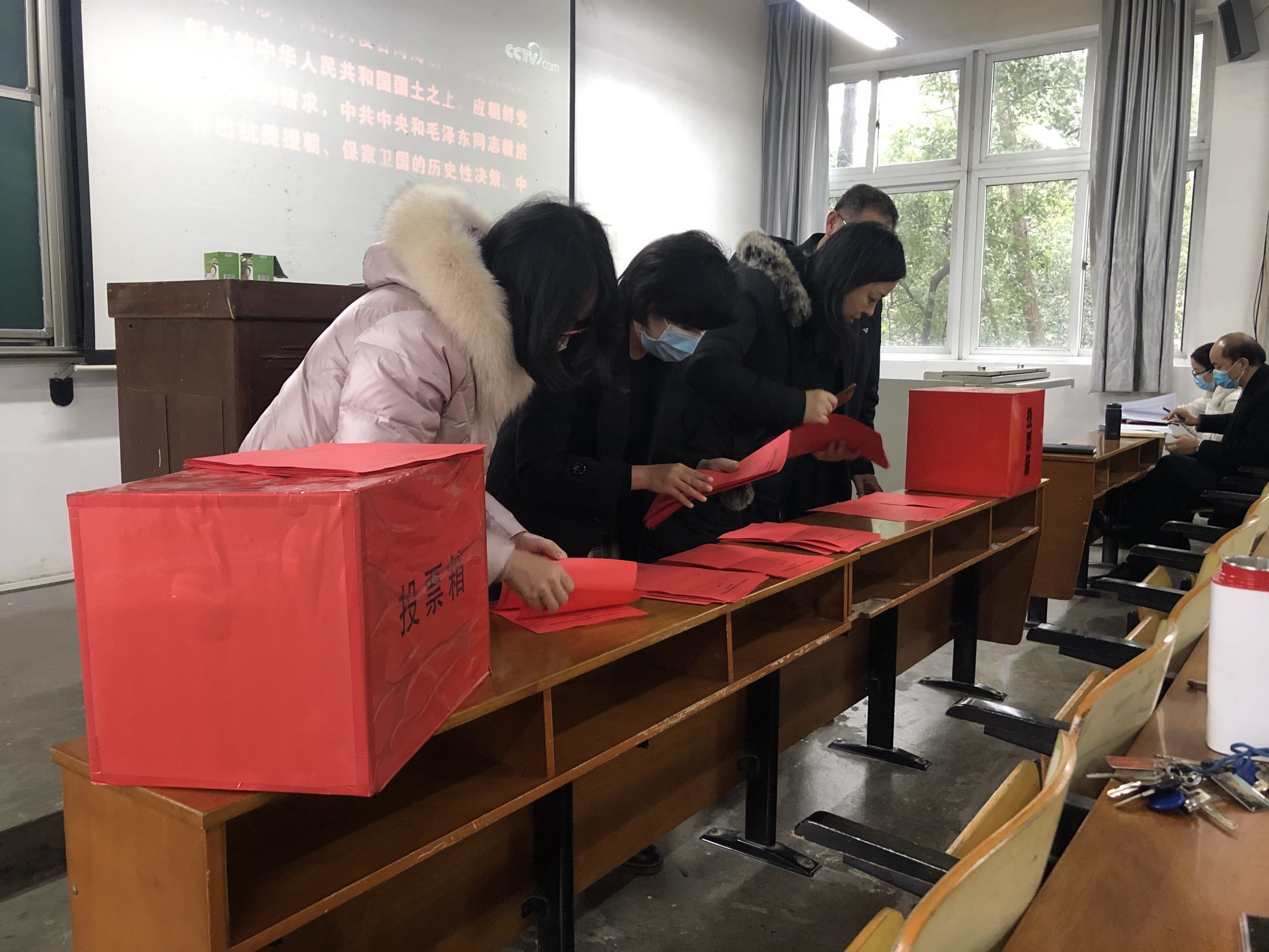 会议伊始,全体起立奏唱国歌。随后,韩昕书记介绍了本次大会的目的、要求、议程等,并清点了到会人数,确定是否合法开会。在确认符合开会条件后,全体党员一致通过了选举办法并通过了计票人、监票人。一系列的准备工作完成后,韩昕书记开始宣布增补委员名额和候选人名单,提示大家可以开始填写选票。本次大会以无记名投票方式选举产生,在场的每位党员公正认真填写投票并有序的将选票投进投票箱。