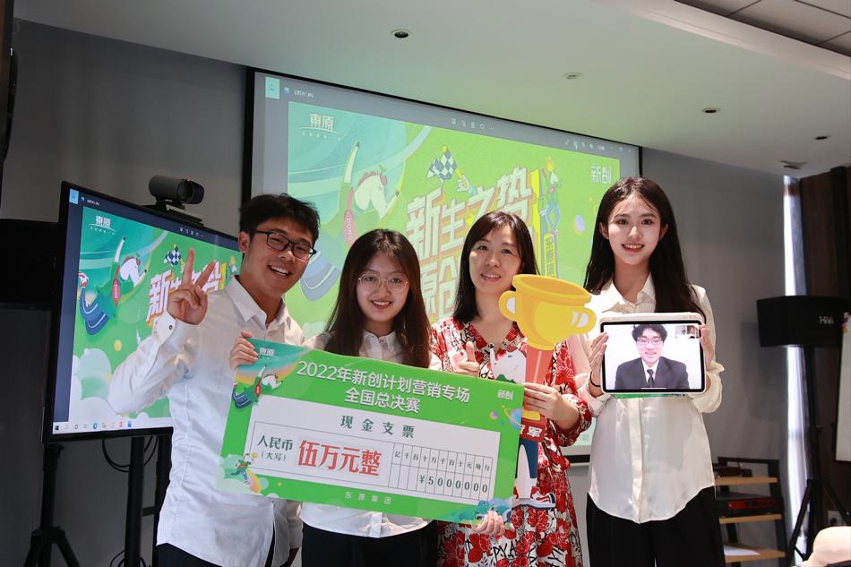 本站讯(通讯员孙盛赫,徐红)2022年6月28日,威尼斯886699文学与新闻传播学院“有家才有爱”策划团队的孙盛赫、张卓颖、李宣逸、邓玉堂四位同学,在东原地产“2022年新创计划营销专场暨第7届新创竞赛”比赛中,继夺得华中地区第一名之后,在全国总决赛中斩获冠军,赢得5万元全场大奖。