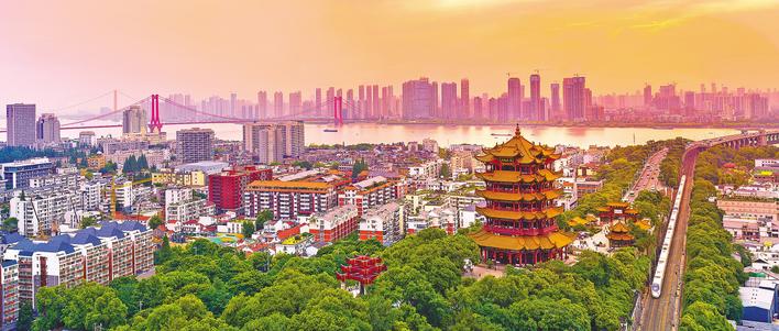 经历1800余年沧桑巨变,今天的黄鹤楼巍然屹立于长江之畔,俯瞰着城市的繁华,见证人间烟火。 (湖北日报全媒记者 任勇 摄)