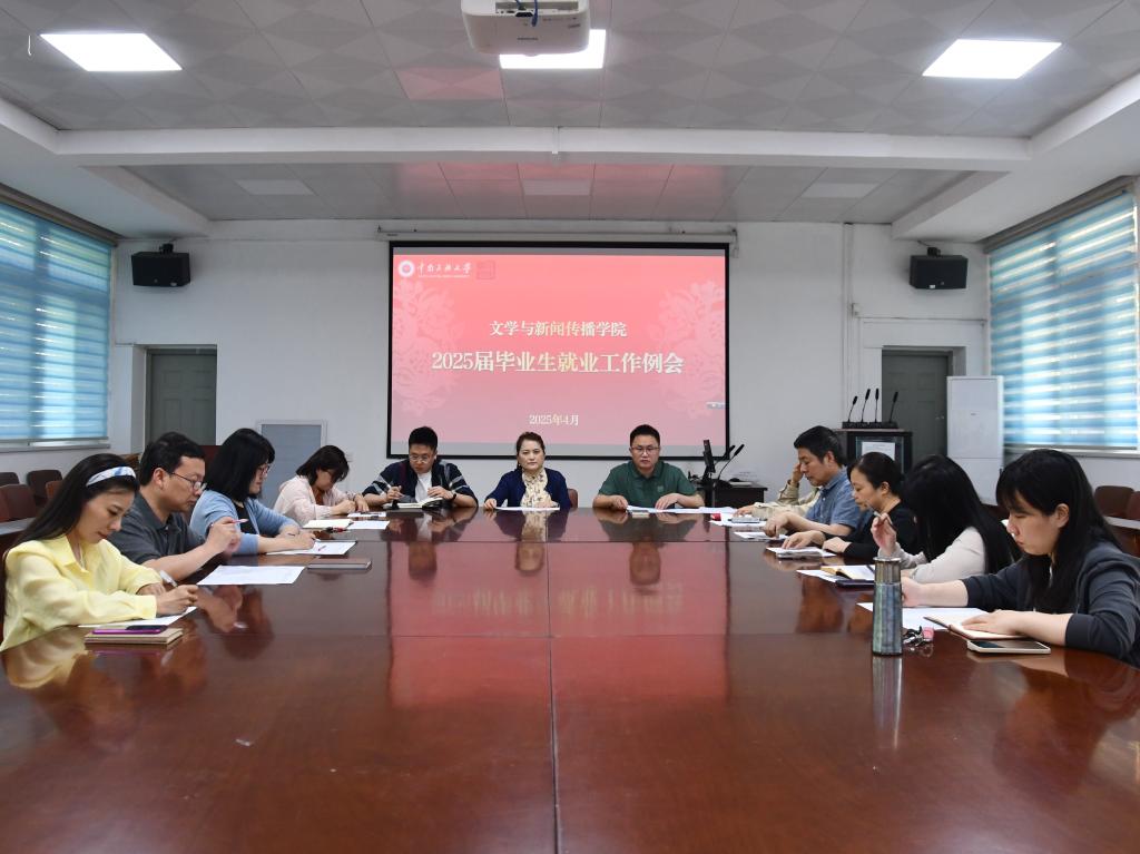 (通讯员 王泽光)为深入贯彻落实学校关于毕业生就业工作的总体部署,强化就业服务体系建设,切实推动毕业生高质量就业,文学与新闻传播学院于4月18日召开2025届毕业生就业工作推进会。学院党委书记谢岚、党委副书记牛磊出席会议并作工作部署,新闻与传播类辅导员龚观、中文语言类辅导员樊晓阳及全体毕业班班导师参会。会议聚焦就业升学数据共享、工作闭环构建及精准施策要求,旨在形成全员联动的就业推进合力。
