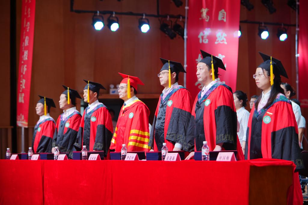 校歌余韵不绝,校党委书记徐业勤,院长李长中和导师代表逐一为毕业生行拨穗礼、颁发学位证书。全体师生齐唱《歌唱祖国》,毕业典礼圆满落幕。