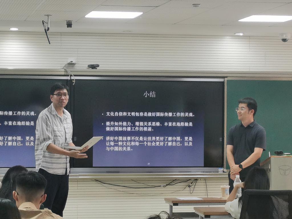 黄骏副教授对姬教授的分享表达了诚挚感谢,他表示,学术研究需立足国家政策与个人兴趣的结合点,研究者既要拓宽学术视野、锚定学术研究疆域,更要培养跨学科思维能力、加强“他者”理解为解决国际传播中的卡点贡献力量。整场讲座,内容充实、案例鲜活,不仅有效深化了师生对国际传播国家战略的系统性理解,更为相关领域研究提供了全新思路与方法。