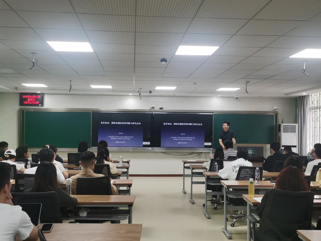 本站讯(通讯员:李妍 摄影:李妍)9月21日上午,学院邀请中国传媒大学教育部国际传播联合研究院副院长、媒体融合与传播国家重点实验室研究员姬德强教授在10号教学楼227教室做《见外知内:国际传播的形势判断与研究走向》的学术讲座。讲座由黄骏副教授主持,学院相关专业教师及部分研究生参加。