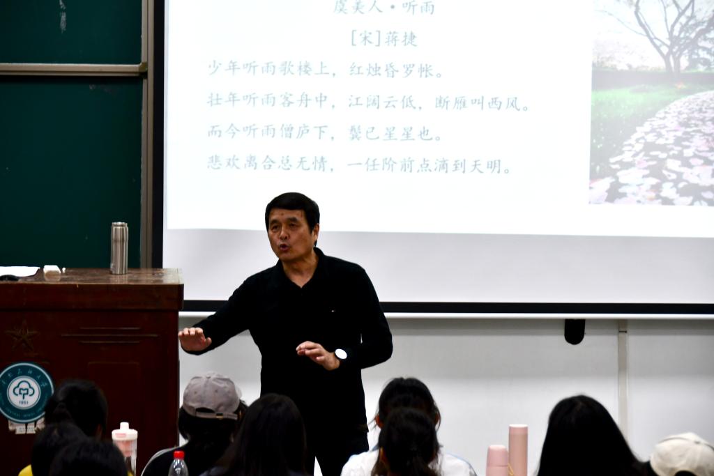 李建中教授幽默风趣的授课风格深受学生喜爱,他通过多次互动,以《红楼梦》这一经典名著迅速与学生拉近距离、引发共鸣,并以古文提问的方式引导学生深入探讨《论语》《孟子》等经典读物,让学生在交流中直观体会到经典与文化传承的深刻关联。课堂氛围始终活跃,互动频繁,不时响起热烈掌声。学生们全程专注聆听,黑板上书写的“听思聪”“视思明”“事思敬”“疑思问”更凸显了课堂对思维深度的重视。整场讲授兼具学术深度与人文温度,不仅为理解经典本质提供了深刻洞见与清晰思路,更搭建起情感共鸣的桥梁。