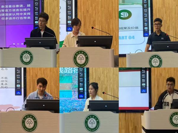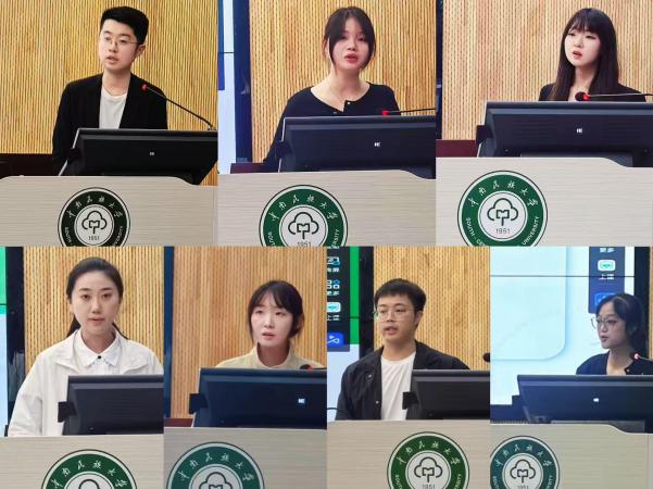 在下半场分享中,外国语学院六位硕士生和文学与新闻传播学院班志斌老师同样逐一汇报了自己的研究成果。班志斌老师分享了关于AI赋能传统文化创新传播的思辨性研究成果,从“记忆与认同”视角探讨人机共生理念;硕士生赵虹钧以华为企业外宣为例,探讨了企业如何助力国家形象塑造与文明交流互鉴的议题;硕士生周艳丽从关联理论视角系统分析了《檀香刑》中文化负载词的英译策略;硕士生王伊文基于语料库对《哪吒2》英文影评进行了态度分析;硕士生韩灿灿及其团队通过对比《喜福会》与《哪吒2》,剖析了中华文化出海评价转变的深层原因;硕士生王靖媛梳理了中国电影在泰国的传播历程与挑战;硕士生范雨欣运用积极话语分析研究了《中国日报》国际版对武侠形象的建构影响。