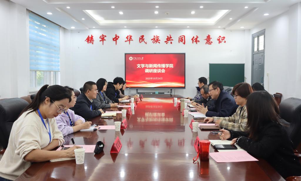 本站讯(通讯员符艳丽 摄影侯佳音)10月24日下午,青海民族大学文学与新闻传播学院行政副院长孙中强一行莅临我院开展调研座谈。我院院长李长中教授一行热情接待,双方就中国语言文学学科建设、文科实验室运营等事宜展开深入研讨。