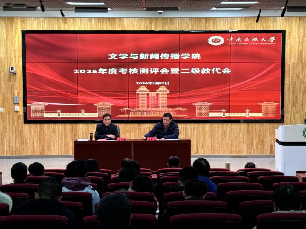 (通讯员仇梦娜 摄影曾令建)为全面总结学院年度工作,深化民主管理,凝聚发展共识,1月12日上午,文学与新闻传播学院2025年度考核测评会暨二级教职工代表大会在文一楼101教室顺利召开。学院全体教职工参会,会议由学院党委书记钱文彬主持。