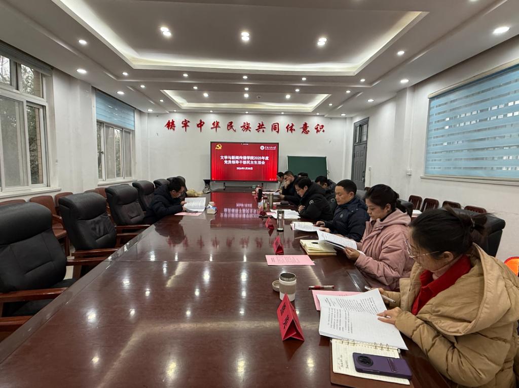 1月30日,文学与新闻传播学院召开2025年度党员领导干部民主生活会,深入学习贯彻习近平新时代中国特色社会主义思想,全面贯彻落实党的二十届四中全会精神,围绕锲而不舍落实中央八项规定精神,推进作风建设常态化长效化,结合思想和工作实际进行自我检视、党性分析,开展批评和自我批评。