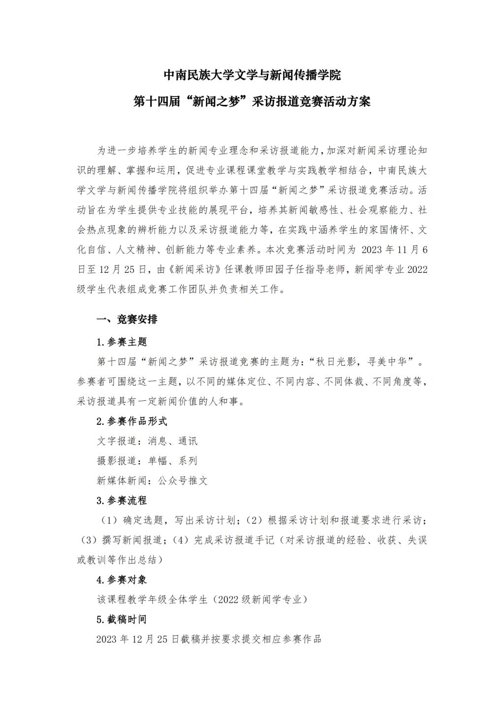 威尼斯886699文学与新闻传播学院第十四届“新闻之梦”采访报道竞赛活动方案