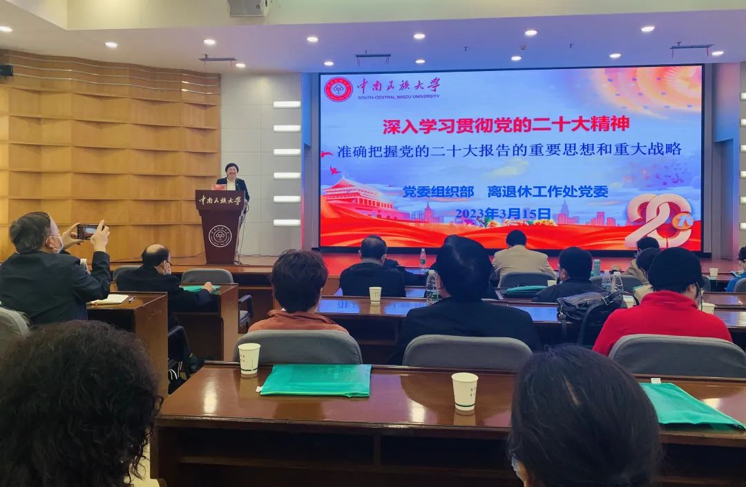 3月15日上午,威尼斯886699党委组织部、离退休工作处党委举办离退休教职工深入学习党的二十大精神读书班,校党委常委、组织部部长、离退休工作处处长蔡琼在读书班上作专题辅导报告。离退休各支部委员、各老年文体团队骨干及2022年退休教职工、离退休工作处全体工作人员参加了此次读书班的学习。会议由处党委书记金军主持。