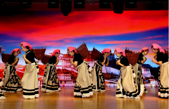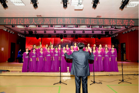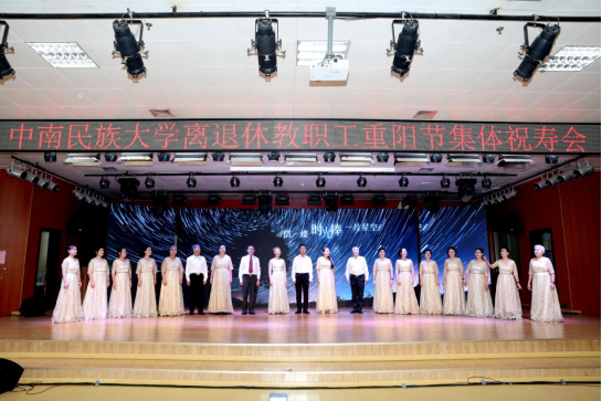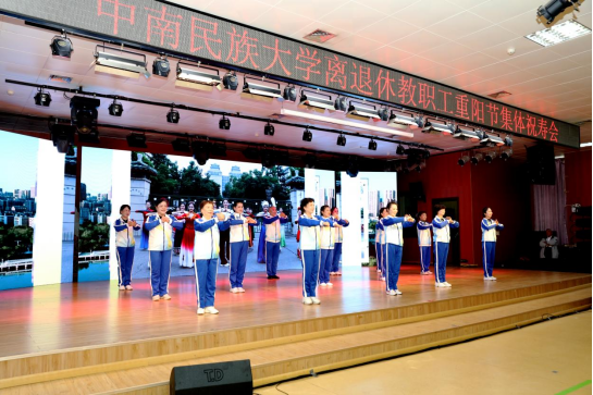 祝寿仪式结束后,“礼赞新时代 福寿享遐龄”文艺演出在退休教师韩昕、汪沛的主持下拉开帷幕。整场演出由学校离退休工作处和民大社区共同组织策划,节目形式多样、内容丰富。藏族舞蹈《新寨欢歌》热情洋溢,二胡齐奏《光明行》激昂奋进,女声小合唱《南泥湾》婉转动听,形体展示《炫彩》优雅大方,朗诵《世界赠予我的》深情真挚,健身操《中华猜猜操》活力四射,器乐合奏《夕阳红》温情脉脉。老同志们精神饱满、情绪高昂,用精彩的表演礼赞新时代,抒发对美好生活的热爱。