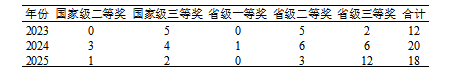 从近三年的数据来看,学院在本赛事中的成绩呈现出从省级到国家级奖项的全面突破与高质量提升。具体而言,学院在2024年实现了国家级二等奖“从0到3”的飞跃,并在2025年保持了国家级奖项的稳定产出。同时,省级奖项获奖总数连续三年保持高位,2025年省级获奖达15项,显示出学生扎实的编程基础与强劲的竞争力。