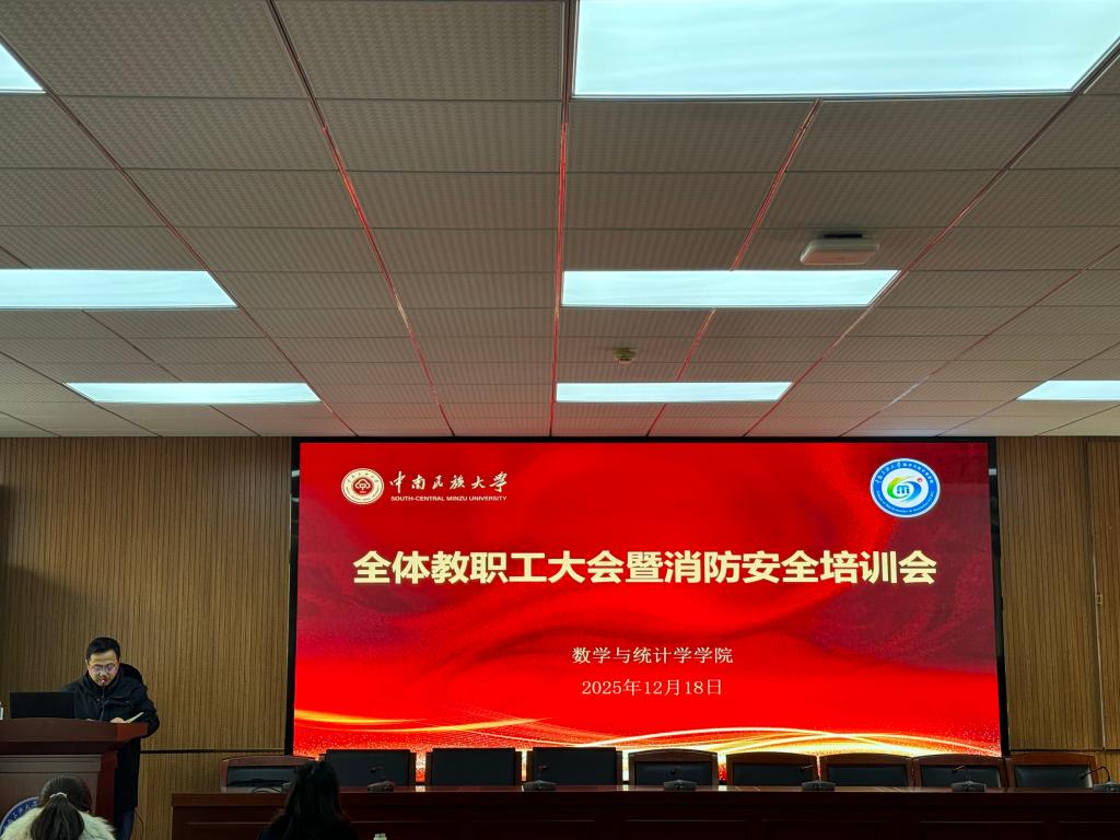 为持续筑牢校园安全防线,切实增强教职工消防安全意识与应急处置能力,12月18日下午,数学与统计学学院在9号楼309会议室举行消防安全专题培训。学院党委书记郭晖主持会议,学校保卫处副处长朱溢应邀担任主讲,全体教职工参加培训并参与消防演练。