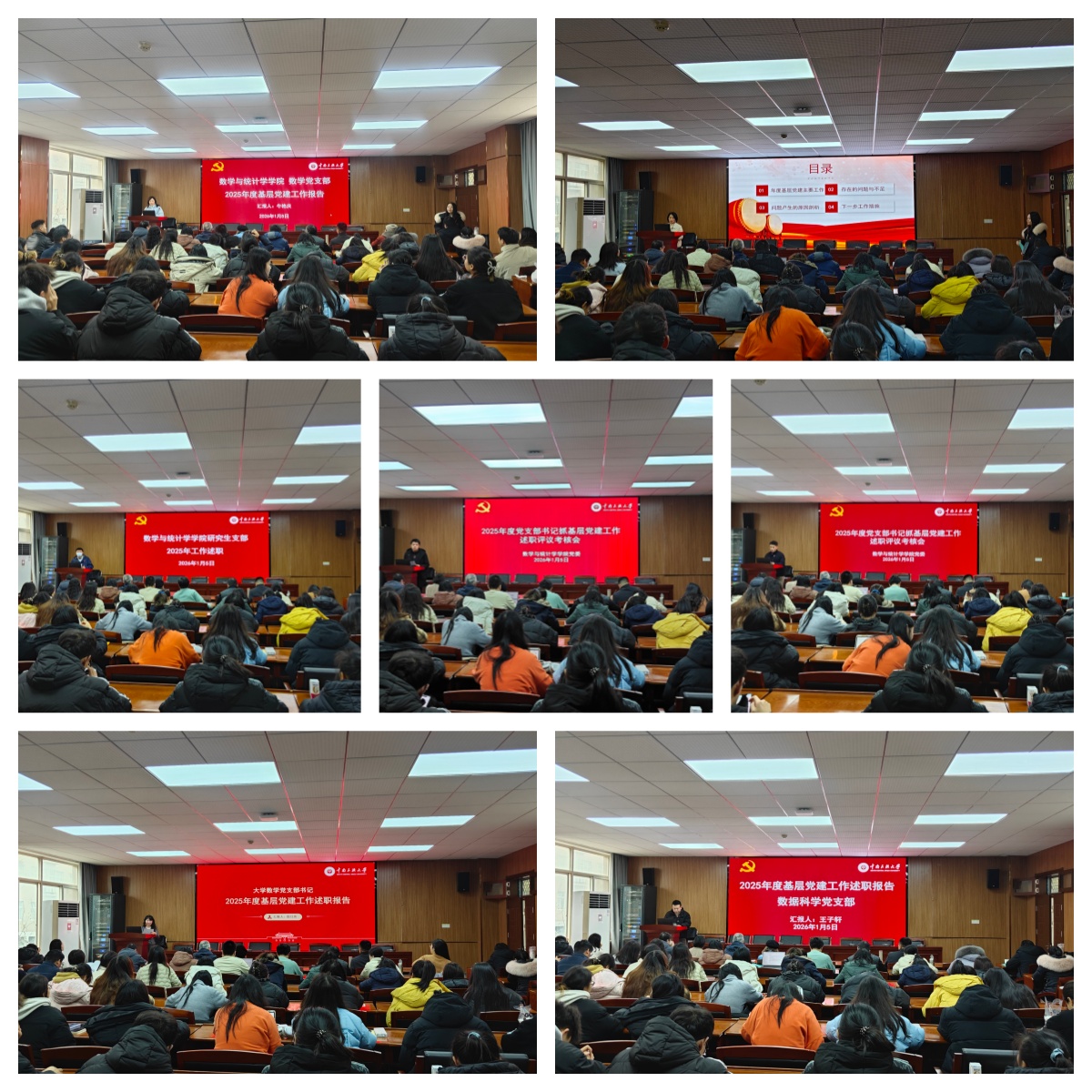 会议期间,我院4个教工党支部、3个学生党支部书记依次登台述职。各位党支部书记紧密围绕2025年度基层党建工作开展情况,深入查摆工作中存在的突出问题,系统谋划下一步工作思路与举措,并着重阐述了支部创新特色活动的开展情况以及所取得的丰硕成果。