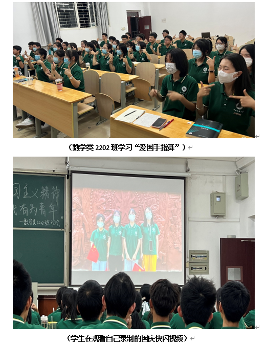 此次主题班会内容丰富多彩,开展了集体歌咏爱国诗篇、群唱爱国歌曲、排演“爱国手指舞”、爱国知识问答、拍摄以“爱国”快闪视频等系列活动,展现了我院学子良好的精神风貌与深厚的爱国情怀。