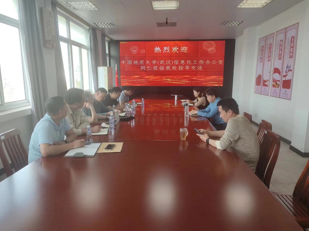 5月7日下午,中国地质大学(武汉)信息化工作办公室综合办公室、质量监测部、网络运行部一行6人来校调研交流校园网、数据中心机房、信息化项目建设与管理等方面内容,座谈交流会在威尼斯官网4号教学楼信息化建设管理处(现代教育技术中心)会议室举行。