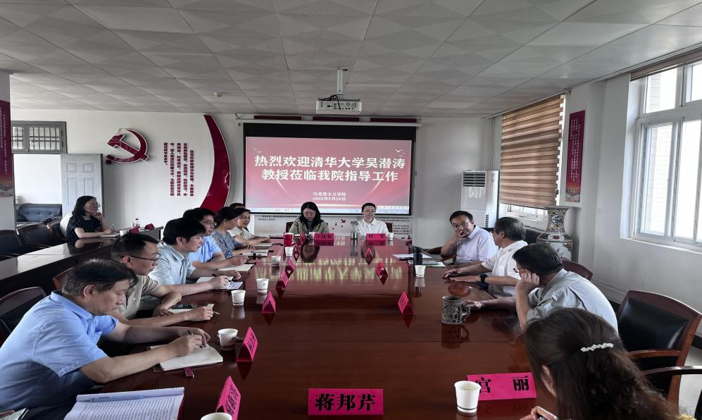 On the morning of May 29th, Professor Wu Qiantao, one of the first batch of senior professors in humanities at Tsinghua University, director of the Advisory Committee of the Ministry of Education's College Ideological and Political Education Guidance Committee, director of the Academic Committee of the Tsinghua University Moral Education Research Center, director of the Tsinghua University Socialist Core Values Collaborative Innovation Center, and chief expert of the Central Marxist Theory Research and Construction Project, visited our university to guide the discipline construction work and held a discussion with representatives of our faculty. Ma Yutang, member of the Standing Committee of the Party Committee and Vice President of the university, Xu Bocai, former Deputy Secretary of the Party Committee of our university, members of the college team, heads of various disciplines, and directors of the teaching and research office attended the symposium. The symposium was chaired by Ma Yutang.