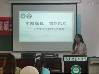 许家烨围绕如何读书、如何做科研、如何调整心态三大板块的内容,以“学非探花、溯本求实”为主题,向同学们分享了关于学术成长的几点感悟。她以保尔·拉法格《忆马克思》一书、习近平总书记的读书故事为例,深入浅出地阐述了读书的重要性,“学术研究起好步,关键在读书。”许家烨鼓励同学们广泛阅读经典、拓宽阅读领域,有选择性、有目的性地阅读,充实自己的知识库。同时,她提出,阅读经典名著应回归到“第一手”的阅读材料当中,从中获取新的学术体验与心得感悟。