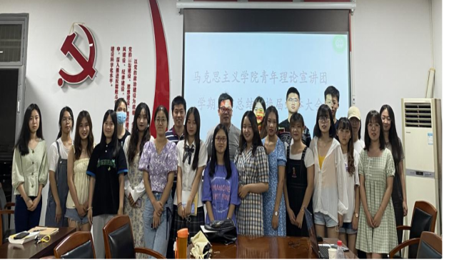 2021年6月28日晚上19点,马克思主义学院青年理论宣讲团在文一楼501会议室召开学期工作总结及换届会议。院党委书记魏大江,院团委书记、2020级辅导员金瑶,宣讲团前团长周胜艳以及宣讲团所有讲师和工作人员参与本次会议。本次会议由团长唐丽萍主持。